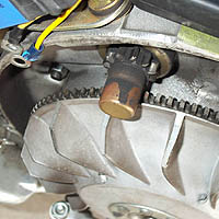toothed gear (similar to the kickstart gear) which turns the flywheel. The flywheel: