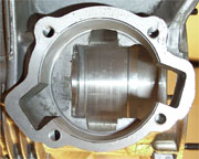 The transfer openings on the GP200 casings are larger than my Li125 casings. The crankcase mouth is about 74.5mm in diameter. Hopefully this will be a good base to up the power from the standard 7hp of the Special