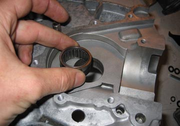 bearing. The new flywheel bearing is placed into the casing from the