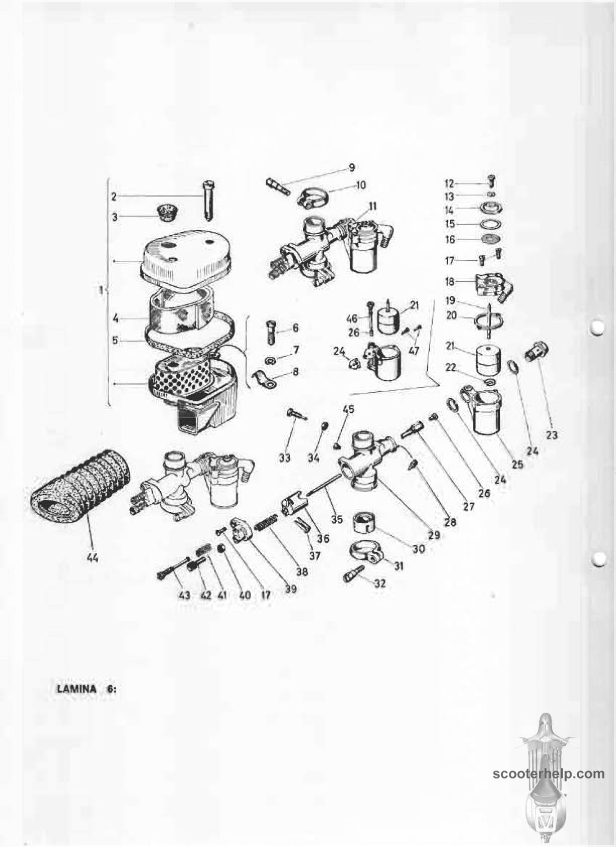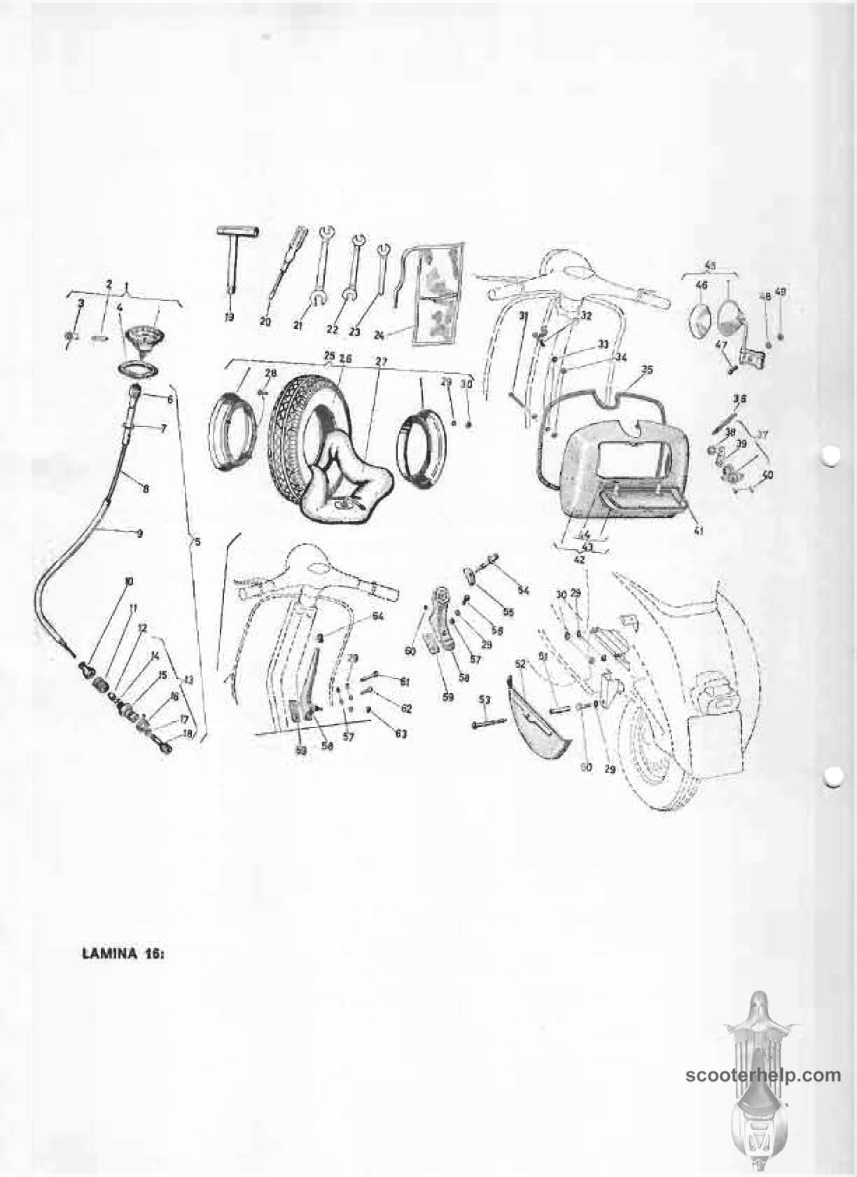 MotoVespa 125, 150, 160 Parts BookClick individual pages below for a 150 DPI page. These are from the original Vespa parts book for service centers & shops. Files sizes are about 100K for a color page and 200K for a black and white. Thanks to an Eduardo García Criado for the original scans. Or click here to download a 7.4MB PDF file. |