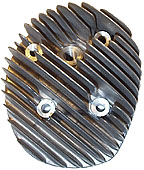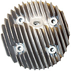 Vespa P200 Malossi head - This head has been machined to give a good clearance between the piston and the head. The little castings on the outside of the barrel stud holes are now standard on new PX200s to stop head warping when torqued down.